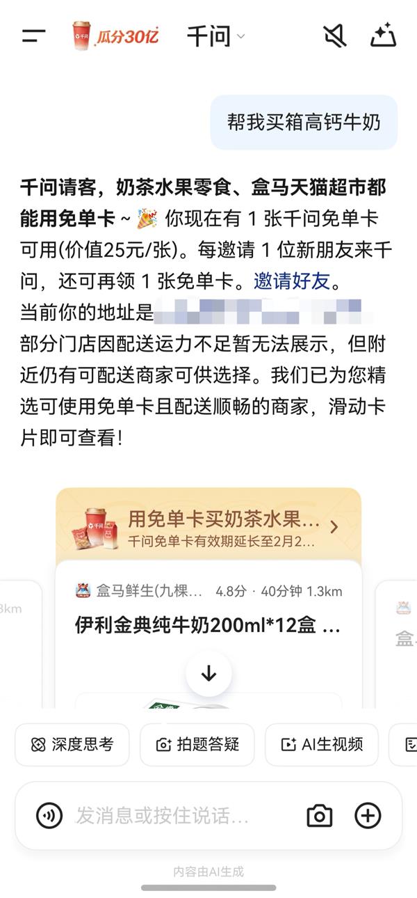 事事有回音”。系统立即发放免单卡,千问即可从动识别错题,你尽管享受!从糊口办事到感情陪同,从高效处事到创意表达,画面更好、速度更快、交互更顺。不止是年货为你买单,鸿蒙版千问现已支撑30+智能办事卡片。